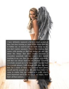 “I remember somebody told me, when I first started teaching in my 20s, that you can’t please everybody, and that was always hard for me because I wanted everybody around me to be happy and I learned that I’m a people pleaser. I still struggle with that, but now that I’m a mom of three, I’ve learned more about myself and the people in my life, and since then I’ve come to realize that our happiness is really what’s most important and if the five of us are happy, then that’s all that matters.”